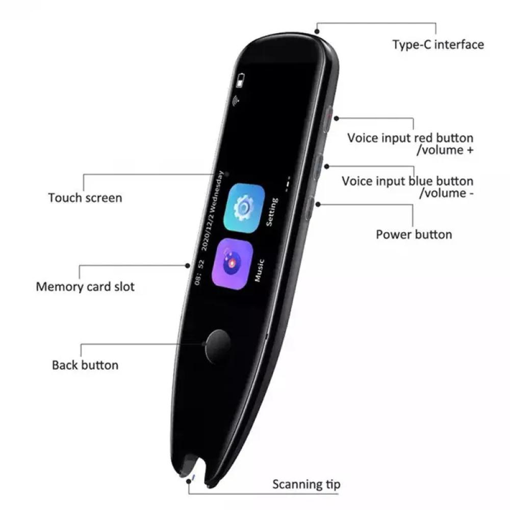 - قلم ماسح ضوئي يحتوي على تقنيات نطق متطورة تضمن لك سماع الترجمات بجودة عالية، مما يسهل على المستخدم فهم النصوص المترجمة.